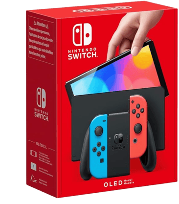 Modello OLED Blu Neon/Rosso Neon - schermo OLED 7" - 64GB. Con cornice più sottile e colori più intensi. Due porte USB, una presa HDMI utilizzabile per collegare la base alla TV e una nuova porta LAN, per sessioni di gioco online più stabili in modalità TV.