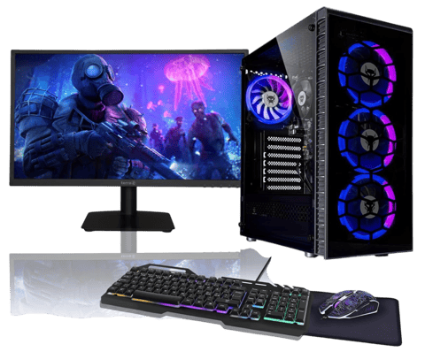 Gaming PC, AMD Ryzen 5 6X4,20GHz 12 Threads, 4K Vega Radeon Grafica, 1TB SSD, 16GB RAM, Monitor LED 24" + tastiera + mouse + tappetino per mouse, WiFi, Windows 11 Pro